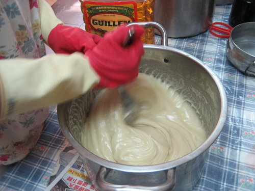 拜託學生打了五鍋不同油脂、不同配方、不同添加的液皂為了就是要了解溶皂後的洗感有何不同、如果呈現的澀度、稠度都一樣,那可能真的要借助其它的添加來改善,合成的添加很多化工行走一趟就可買到,但是安全性呢?植物性的添加就很難找,效果也不甚理想。說實在要做一瓶完美的100%純手工液皂還真是挑戰性蠻大的。funmay 發表在 痞客邦 留言(0) 人氣(6)